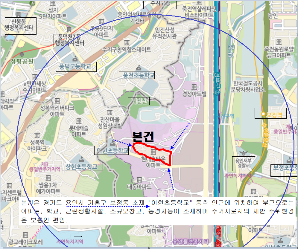 용인 플랫폼시티 내 아파트. 기흥구 보정동 솔뫼마을 현대홈타운 53평형 2차경매(24-72409)0106 본문