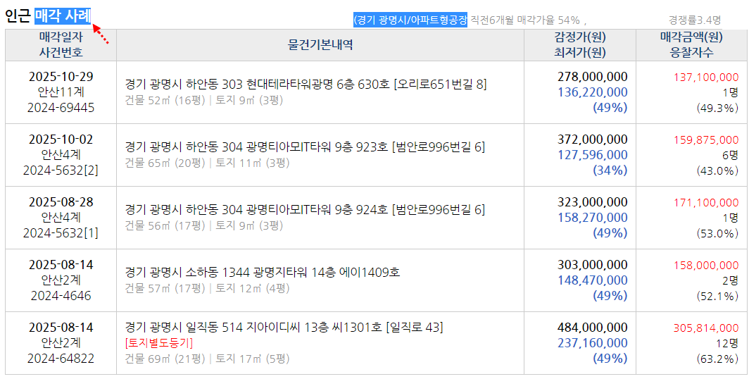 아래는 매각건 진행정보