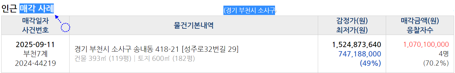 아래는 매각건 진행정보