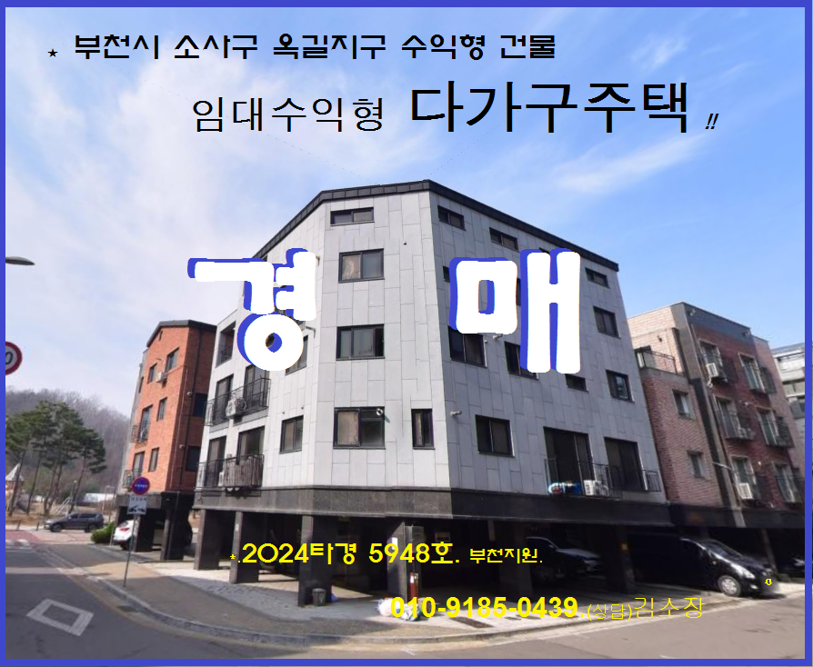 부천 옥길지구 다가구건물 반값경매. 소사구 옥길동 4층구조 수익형 다가구주택 3차경매(24-5948)0127