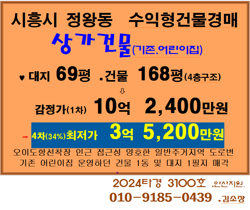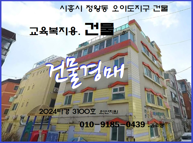 - 시흥시 오이도지구 수익형건물 반값경매 . 정왕동 4층구조 상업용건물 4차경매(24타경3100)0512