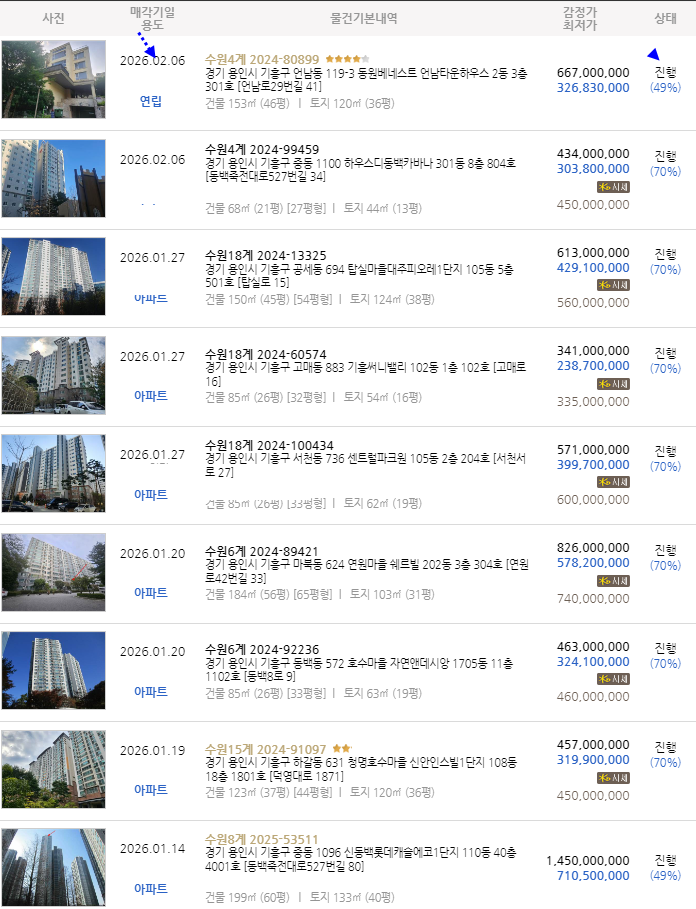 | 용인 기흥구 숲세권아파트. 하갈동 청명호수마을 신안인스빌 1단지 44평형 2차경매(24-91097)0119 (0) | 2026.01.08 |