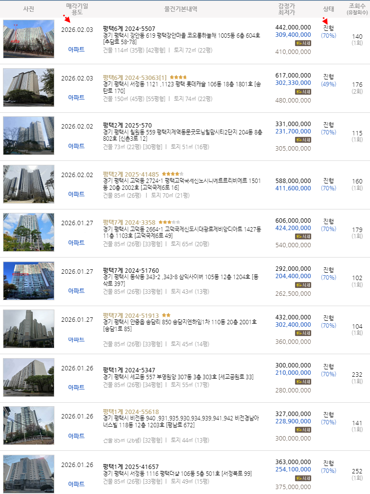 | 평택시 안중송담지구아파트 . 안중읍 송담지엔하임 1차APT 33평형 고층 2차경매(24-51913)0127 (0) | 2026.01.12 |