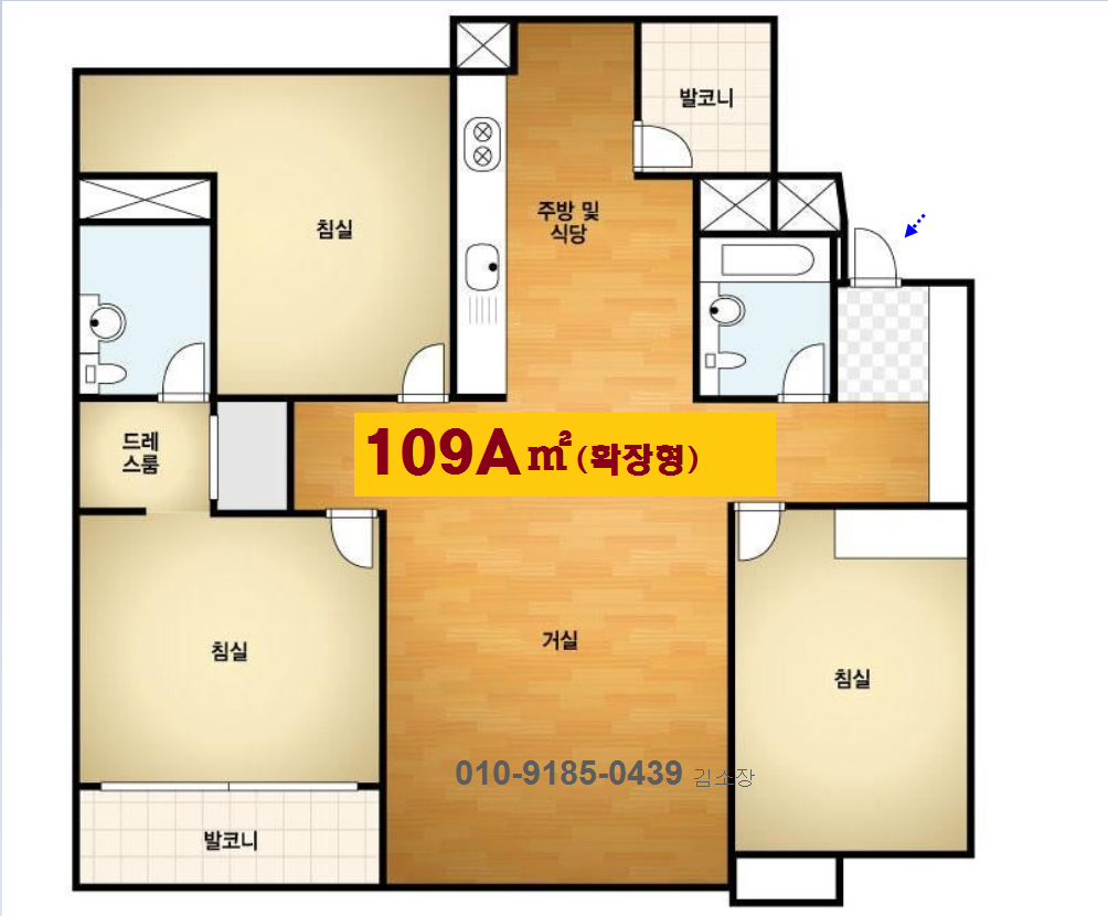 방 3개 ,드레스룸 , 욕실겸 화장실 2개