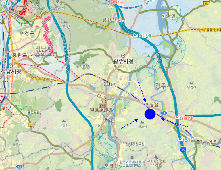 곤지암천과 초월역,쌍동나들목 지근거리