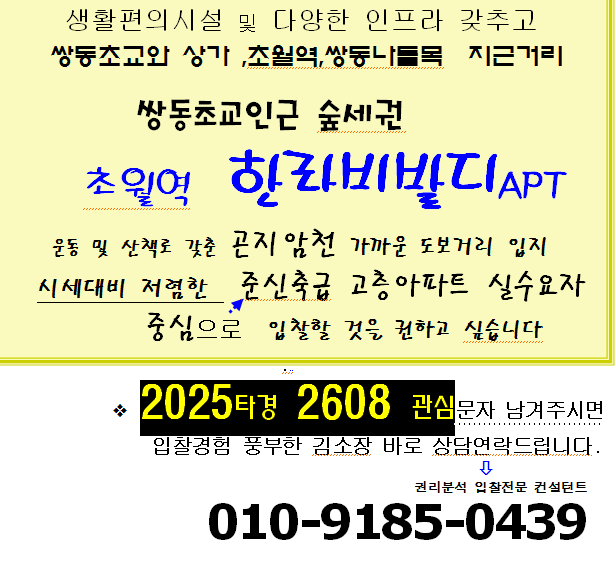 노란궁뎅이 2026. 1. 14. 21:55광주시 초월읍 준신축급 숲세권아파트. 초월역 한라비발디APT 25평형 탑층 2차경매(25-2608)0209