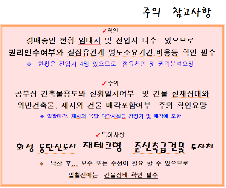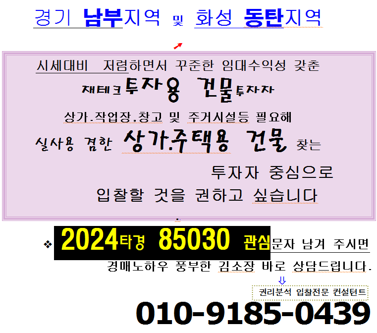 | 화성시 창고형 상가건물 반값경매. 안녕동 태안지구인근 건물 2동 토지578평 3차경매(24-77756)0224 (0) | 2026.01.16 |