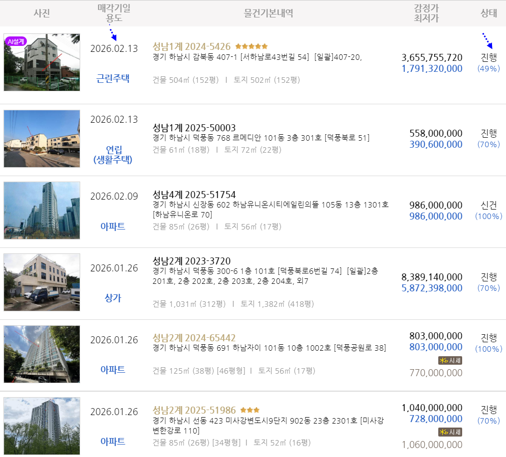 낙찰사례. 경매진행목록 .