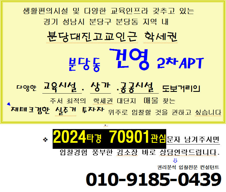 성남시 분당구 학세권 대단지아파트. 분당동 건영 2차APT 32평형 경매(24-70901)0209