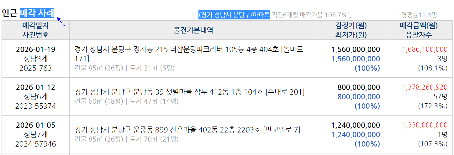 | 성남 서판교아파트. 분당구 운중동 숲세권 산운마을 14단지 경남아너스빌 38평형 경매(25-534)0209 (0) | 2026.01.26 |