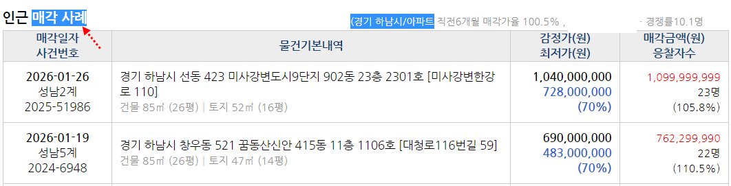 낙찰사례. 경매진행목록 .