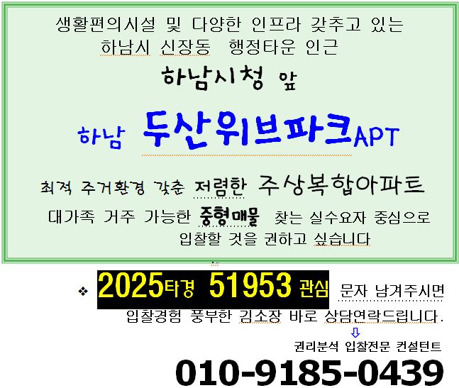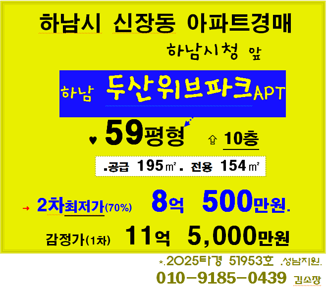 노란궁뎅이 2026. 1. 27. 21:42하남시 신장동 중형APT 경매. 하남시청 앞 하남 두산위브파크 59평형 2차경매(25-51953)0227