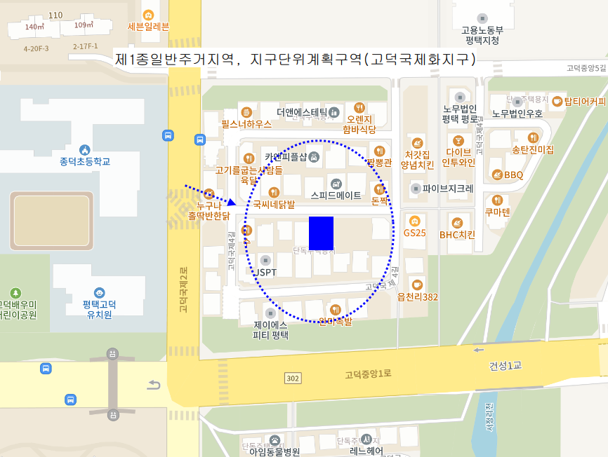 주거 및 상가와 공공시설, 공동주택 혼재된