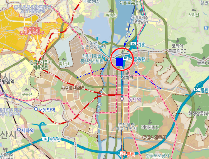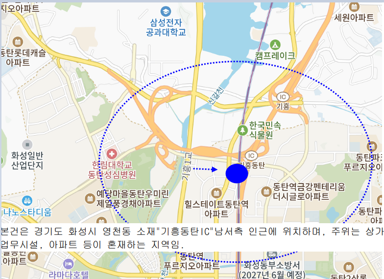 삼성전자 및 지식산업센터,아파트단지와 상가