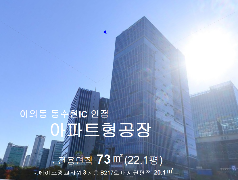 수원광교지구 지식산업센터 반값매각 .이의동 에이스광교타워3 아파트형공장 22평 3차경매(25-901)220