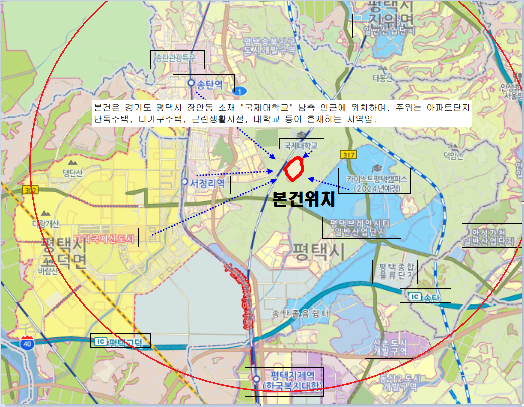 각종상가와 편의시설, 근린공원,평택국제대학교
