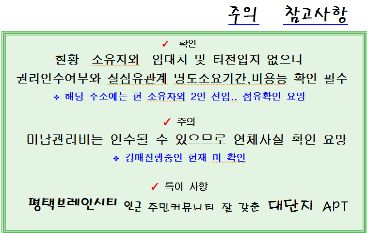 노란궁뎅이 2026. 2. 14. 12:47평택시 장안동아파트 반값매각. 국제대학교 인근 장안마을 코오롱하늘채 42평형 2차경매(24-5507)310