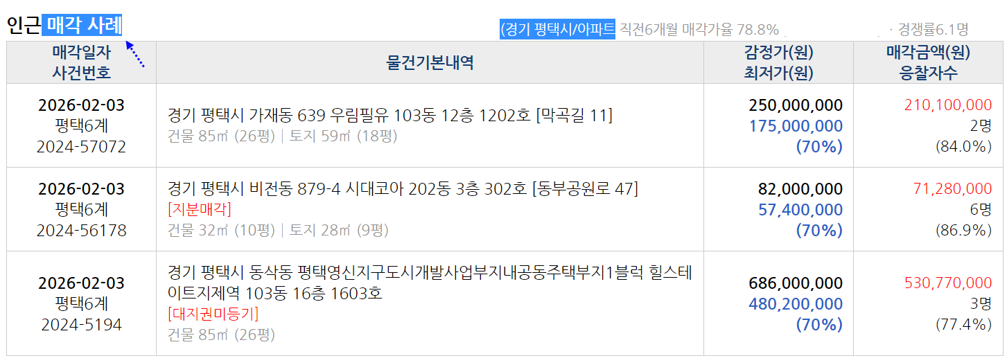 | 평택 안중현화지구아파트 반값매각. 트리플학세권 화현마을 우림필유 34평형 3차경매(24-48764)0316 (0) | 2026.02.14 |