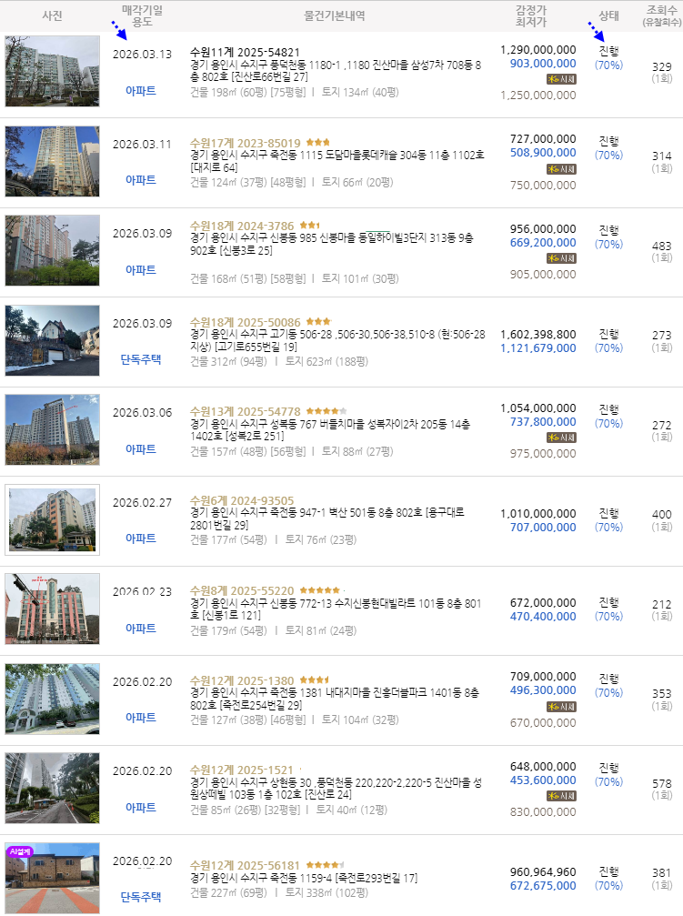 | 용인 기흥구 한국민속촌인근 대단지아파트 . 보라동 민속마을 쌍용 51평형 2차경매(25-54438)0306 (0) | 2026.02.16 |