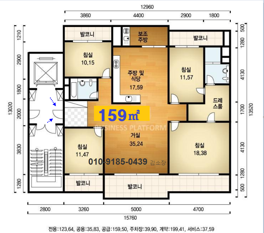 방 4개,드레스룸 1개, 욕실겸한 화장실 2개