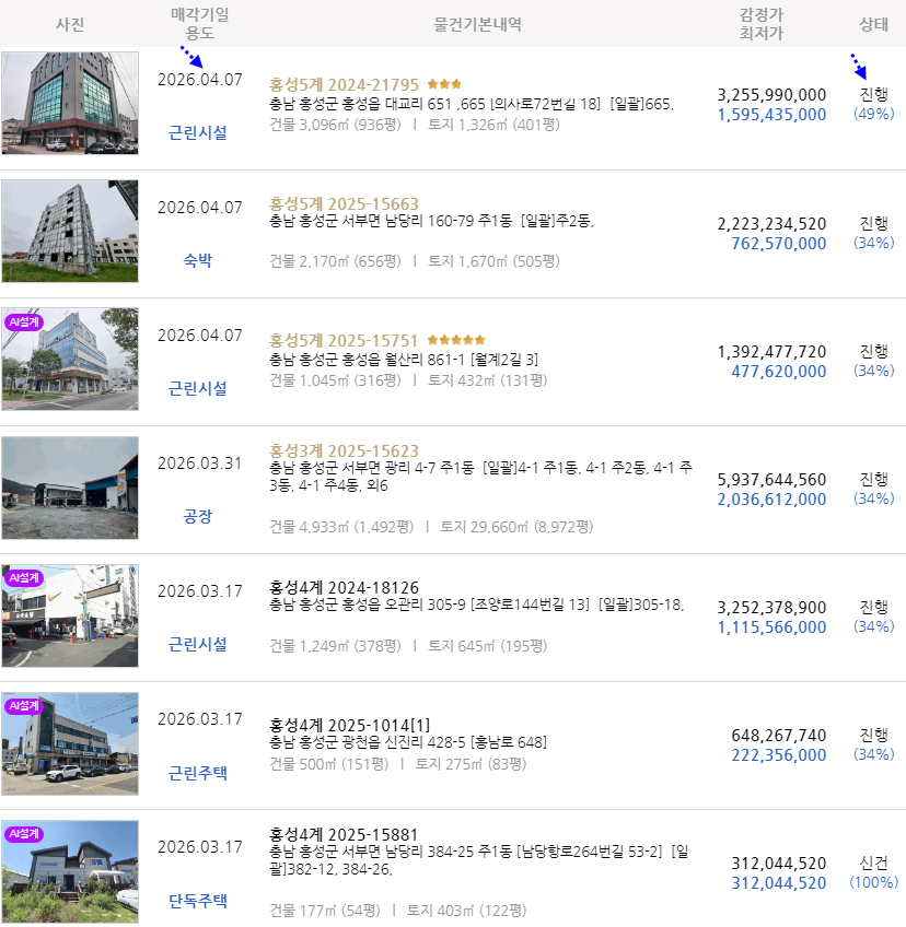 낙찰사례. 경매진행목록 .