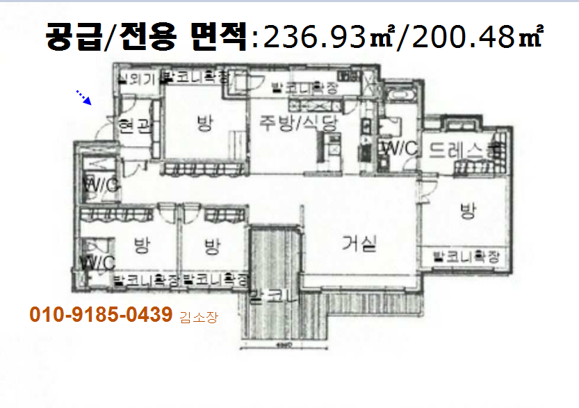 방 4개 ,드레스룸 ,욕실겸 화장실 3개