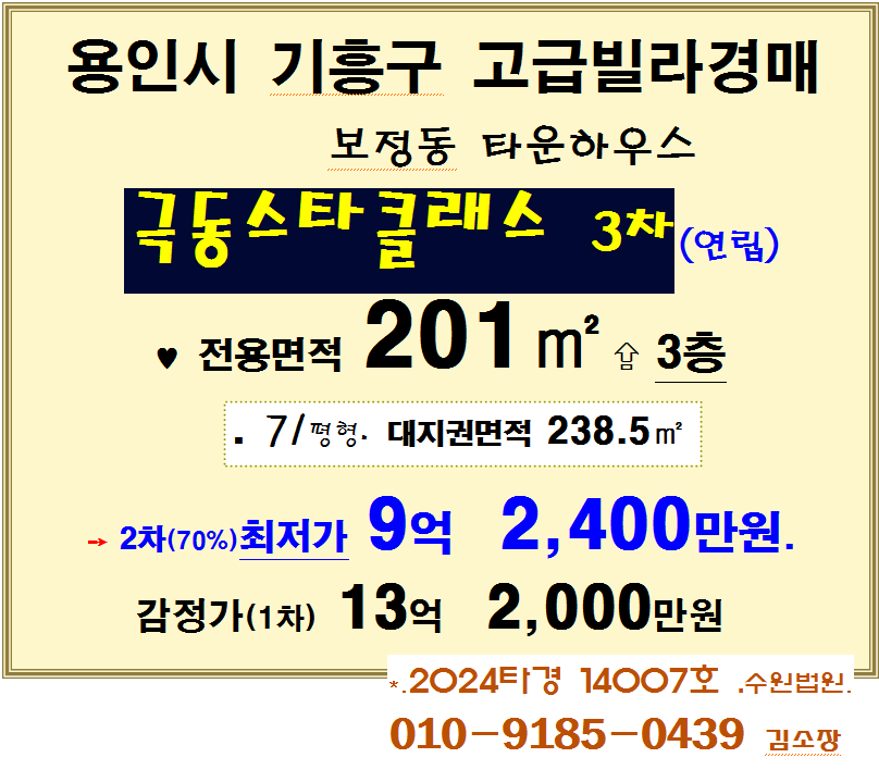 | 용인시 동백지구 타운하우스 . 중동 고급빌라 성산마을 남광하우스토리 75평형 경매(24-100496)417 (0) | 2026.03.09 |