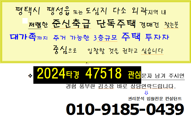 | 평택 팽성읍 대가족용 3층주택 반값매각. 두리 취락지역 복층구조 단독주택 4차경매(24-47518)0309 (0) | 2026.02.21 |