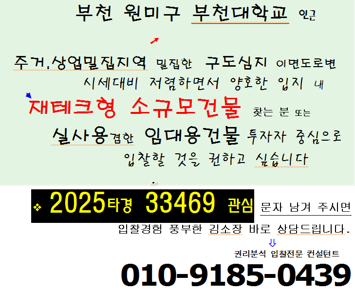 | 부천 옥길지구 다가구건물 경매. 소사구 옥길동 4층구조 임대수익형 다가구주택 2차경매(24-5948)414 (0) | 2026.03.13 |