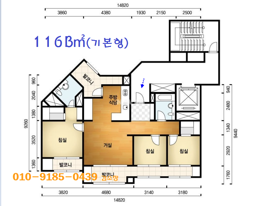 방 3개,드레스룸 , 욕실겸한 화장실 2개