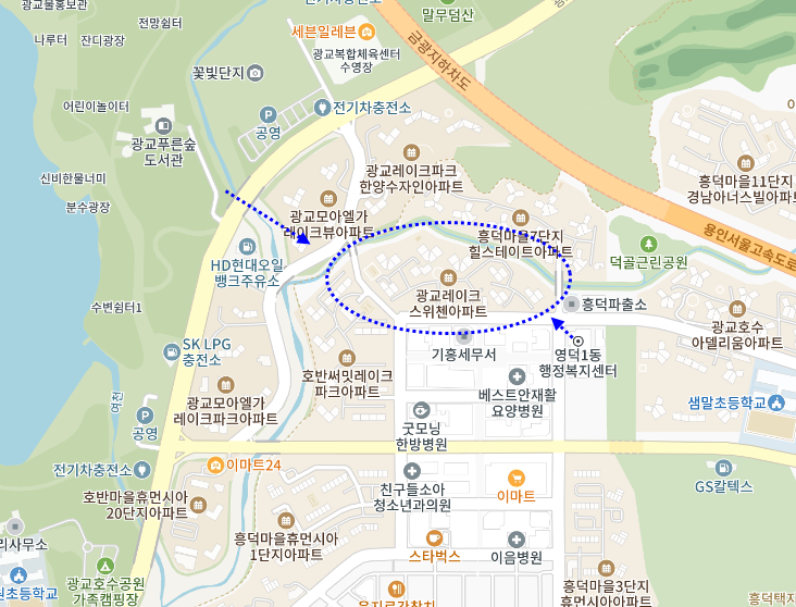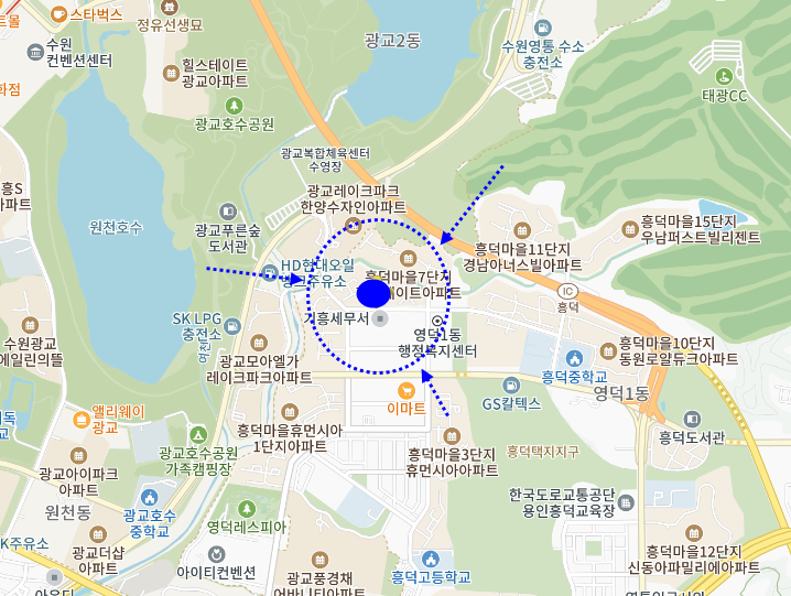 단지 주변으로 국지도로와 흥덕에 둘러쌓여