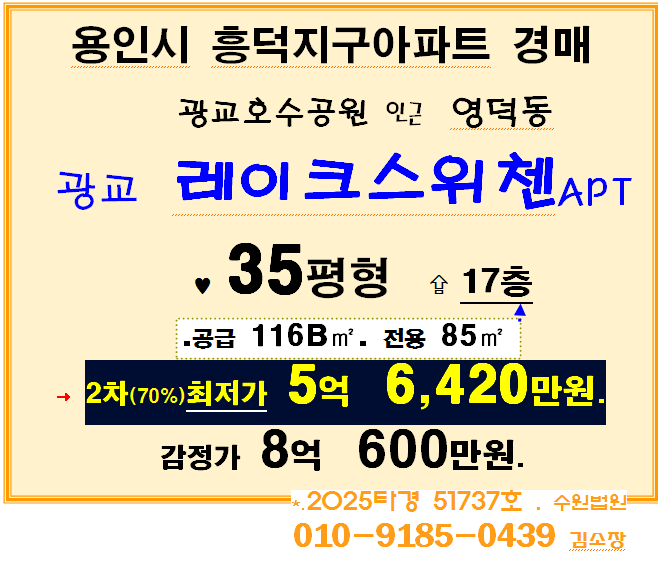 노란궁뎅이 2026. 3. 13. 22:14용인시 흥덕지구아파트. 광교호수공원 인근 광교 레이크스위첸 35평형 고층 2차경매(25-51737)403