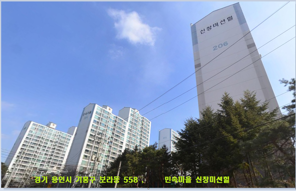 용인 한국민속촌인근 더블학세권아파트. 보라동 민속마을 신창미션힐APT 56평형 2차경매(23-84528)401 본문