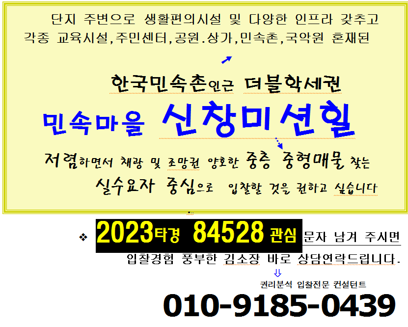 노란궁뎅이 2026. 3. 14. 17:26용인 한국민속촌인근 더블학세권아파트. 보라동 민속마을 신창미션힐APT 56평형 2차경매(23-84528)401