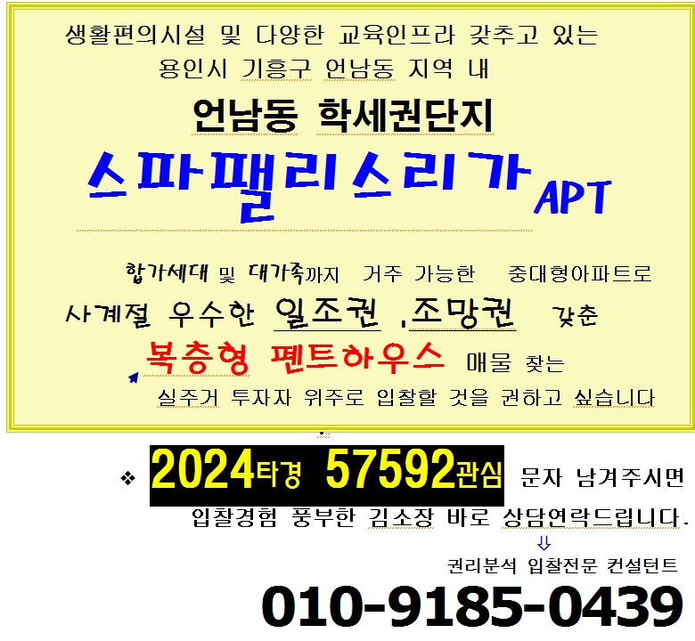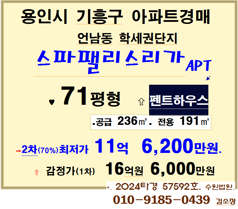 노란궁뎅이 2026. 3. 16. 10:30용인 기흥구 복층 펜트하우스 아파트매각 . 언남동 스파팰리스리가 탑층 71평형 펜트하우스 2차경매(24-57592)421