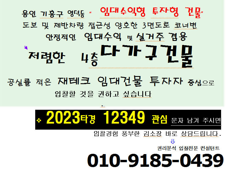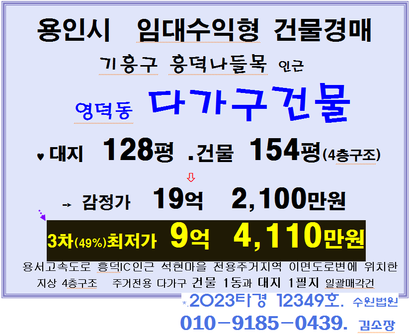 용인시 기흥구 임대수익형 다가구건물 반값매각. 영덕동 흥덕IC인근 4층다가구주택 경매(23-12349)427 본문