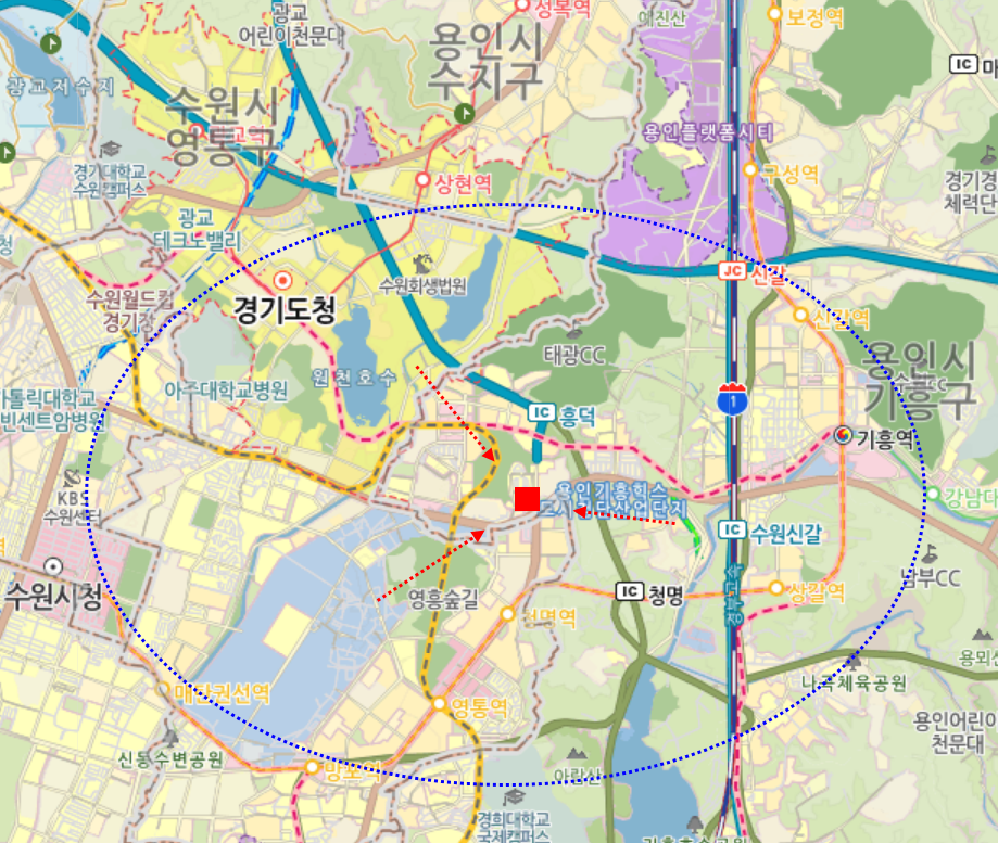 수원신갈IC 및 흥덕IC 인근 영덕동지역내