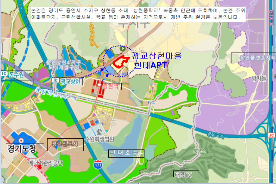 용인시 수지구 트리플학세권아파트. 상현역 광교상현마을 현대APT 33평형 경매(23타경9145)0415 본문