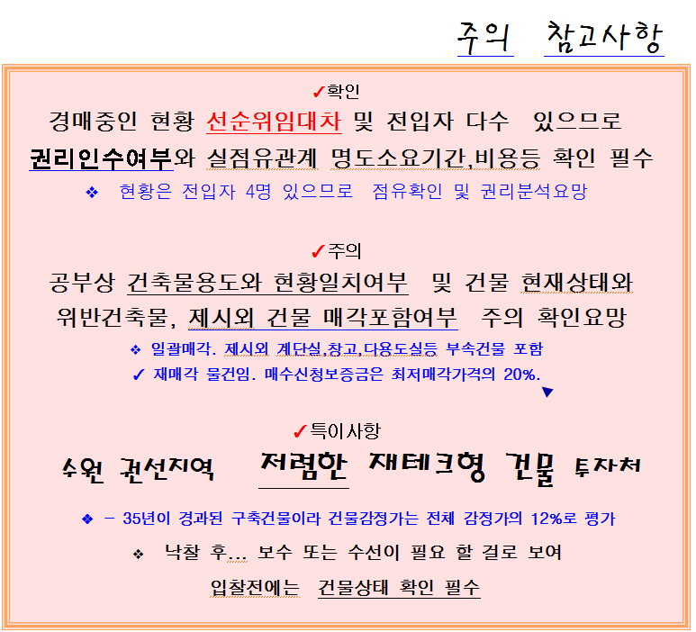 | 수원시 수익형 꼬마건물 반값경매 . 장안구청인근 조원동 4층구조 상가주택 경매(25-51973)0408 (0) | 2026.03.25 |