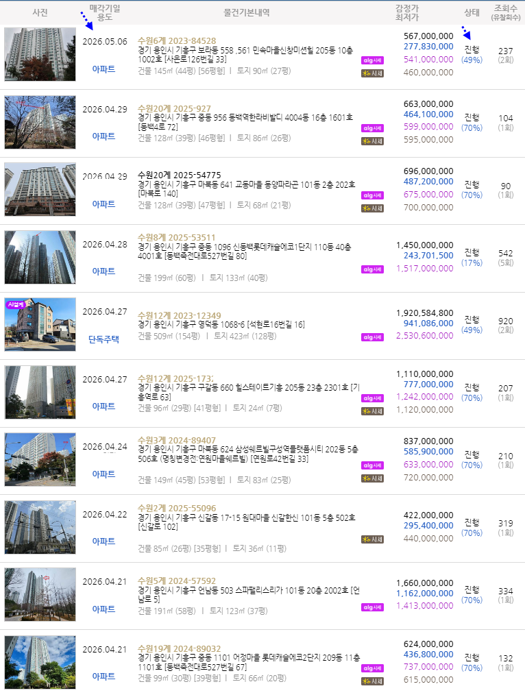 | 용인시 기흥구 플랫폼시티아파트. 보정동 솔뫼마을 현대홈타운 53평형경매(24-12230)0417 (0) | 2026.03.18 |