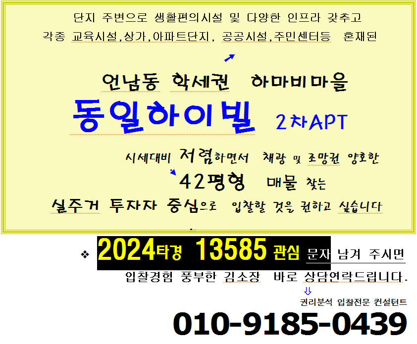 노란궁뎅이 2026. 4. 2. 12:52용인시 기흥구 학세권아파트. 언남동 하마비마을 동일하이빌 2차APT 42평형경매(24타경13585)420