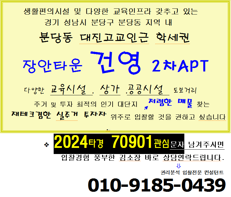 성남 분당구 학세권아파트 . 분당동 대단지 장안타운 건영 2차APT 32평형 경매(24타경70901)0420 본문