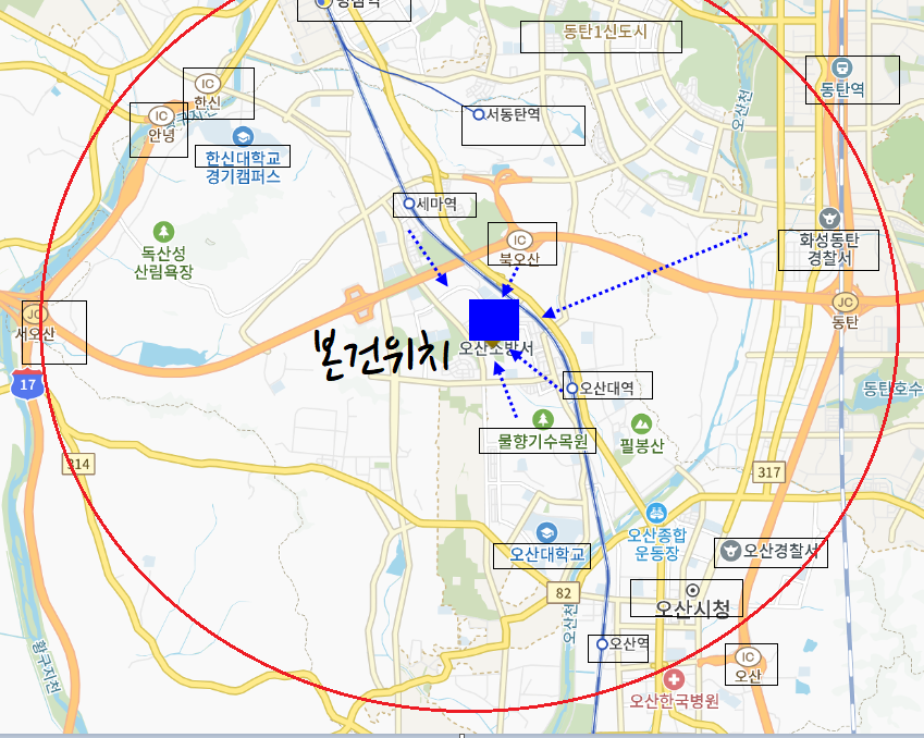 1호선전철역,북오산IC 지근거리여서