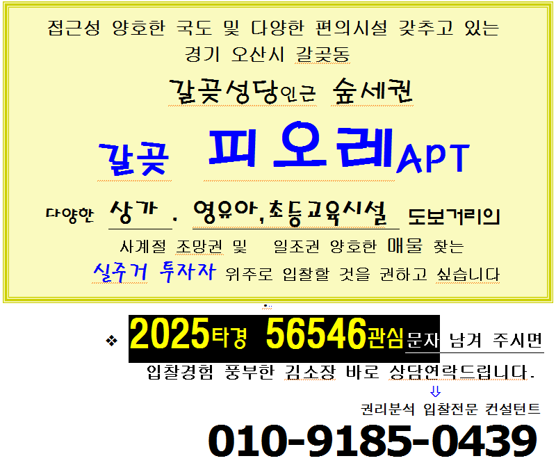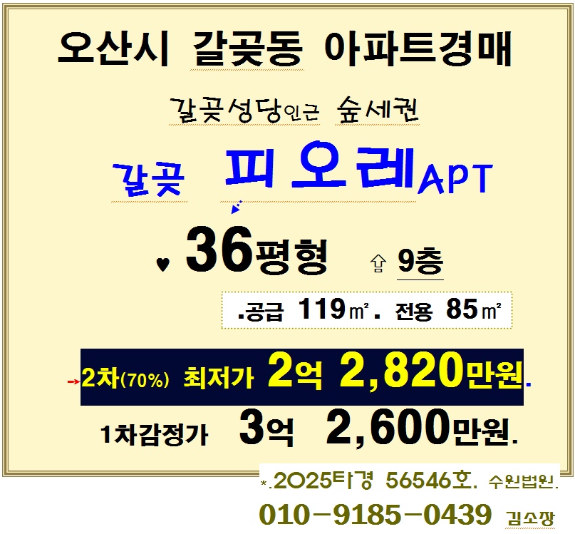 노란궁뎅이 2026. 4. 6. 12:22오산시 갈곶성당인근아파트. 숲세권 갈곶 피오레APT 조망권 우수한 36평형경매(25-56546)422