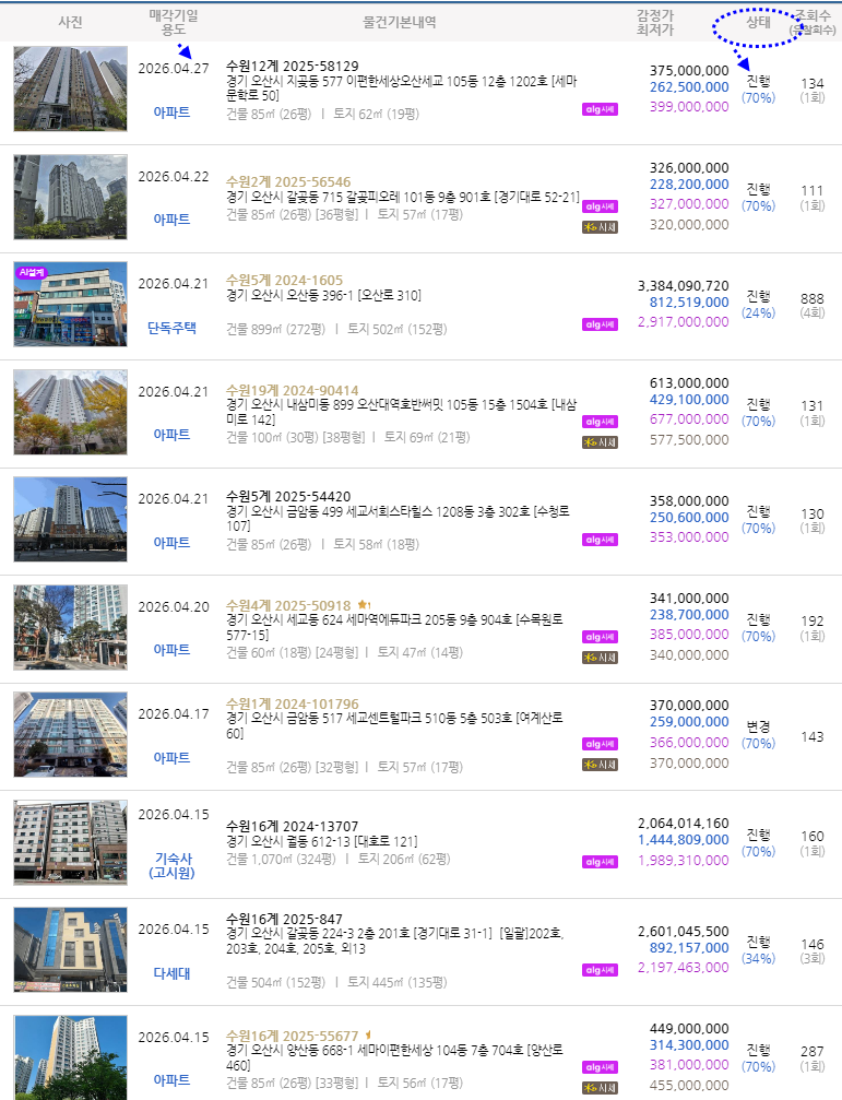 낙찰사례. 경매진행목록