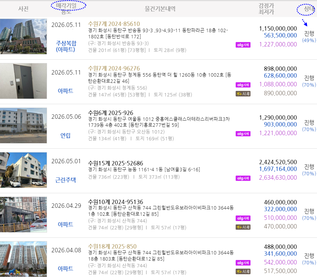 낙찰사례. 경매진행목록